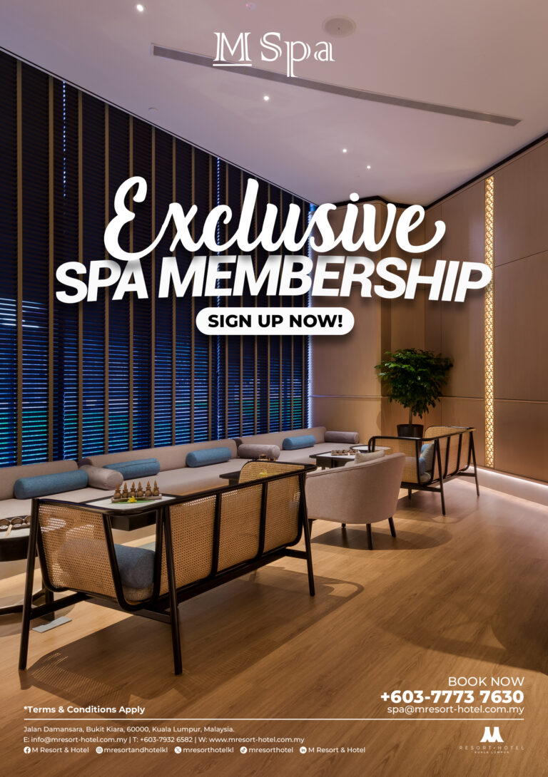 For reservations, please call +603 – 7773 7630 or email spa@mresort-hotel.com.my