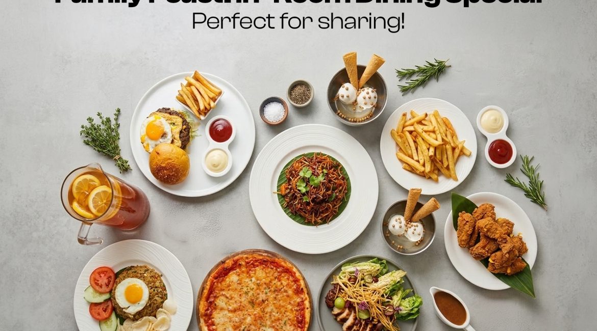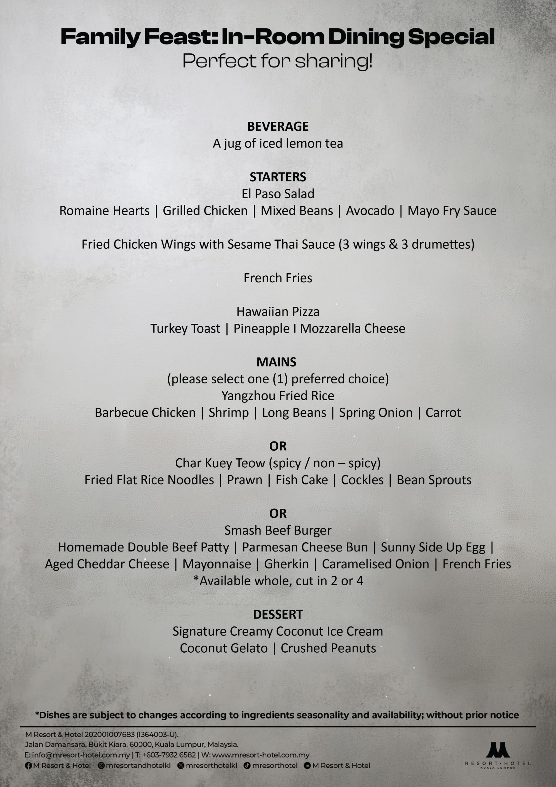 Family moments, served in a room. Enjoy a hearty feast with mains, sides, and refreshing iced lemon tea – made to share, made to remember.