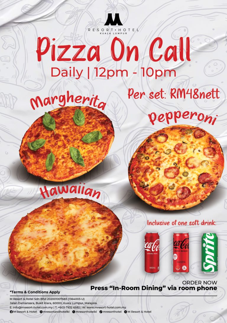 Settle in, switch off, and treat yourself to the perfect in-room combo: fresh pizza and an ice-cold soft drink, delivered with comfort in mind.